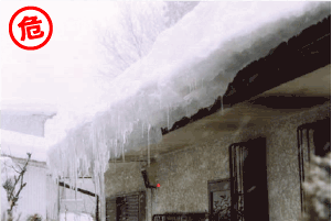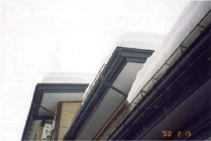 先端(軒先側)の網状の部分で雪を受け止めることにより、落雪を防ぎます。